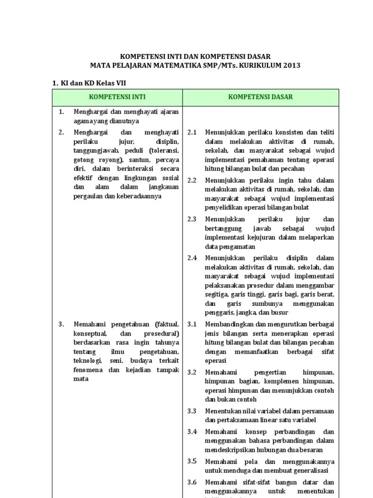 Ki dan kd matematika kelas 7 8 9 smp mts k13 revisi. Tujuan kurikulum mencakup empat kompetensi, yaitu (1) kompetensi sikap spiritual, (2) sikap sosial, (3) pengetahuan, dan (4) keterampilan. Kompetensi inti dan kompetensi dasar matematika sd/mi kelas: Bahasa indonesia, matematika, sbdp dan pjok untuk kelas 1, 2, dan 3. Matematika kelas iv semester 2 revisi 2017.